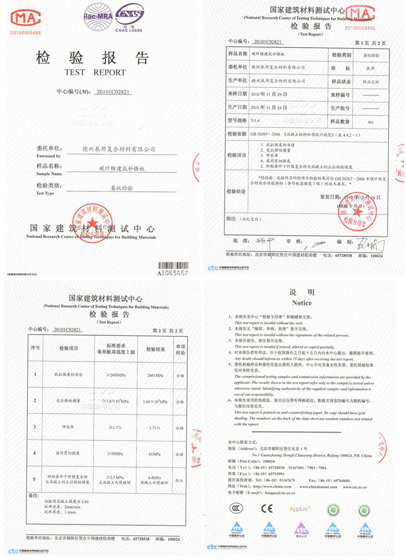 國(guó)家建筑材料檢測(cè)中心檢測(cè)報(bào)告:松邦碳纖維建筑補(bǔ)強(qiáng)板質(zhì)量?jī)?yōu)